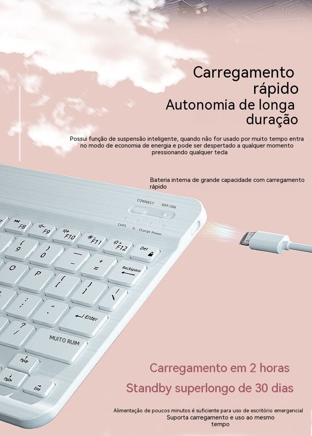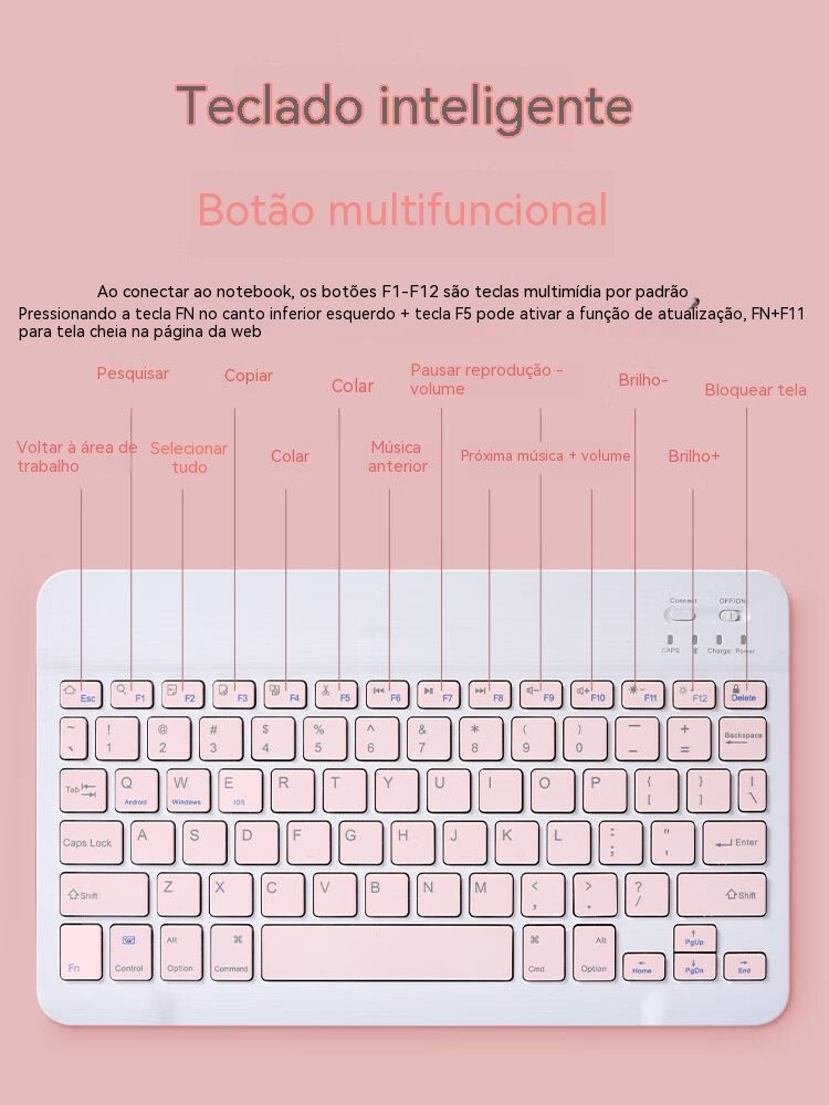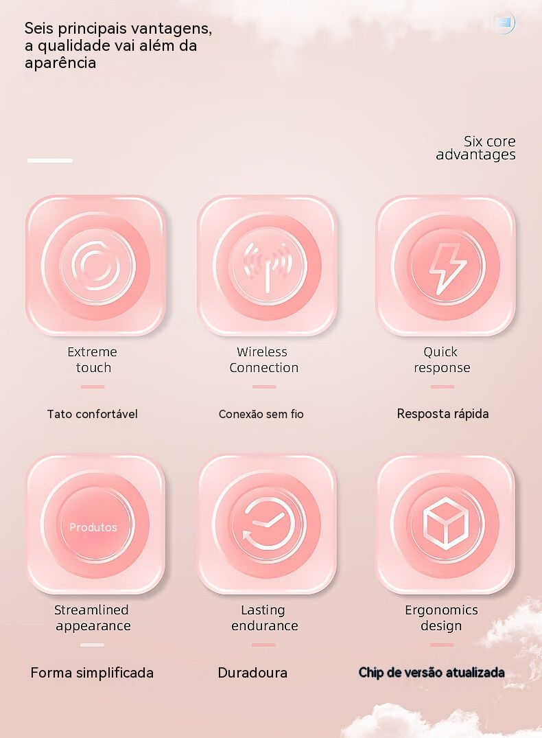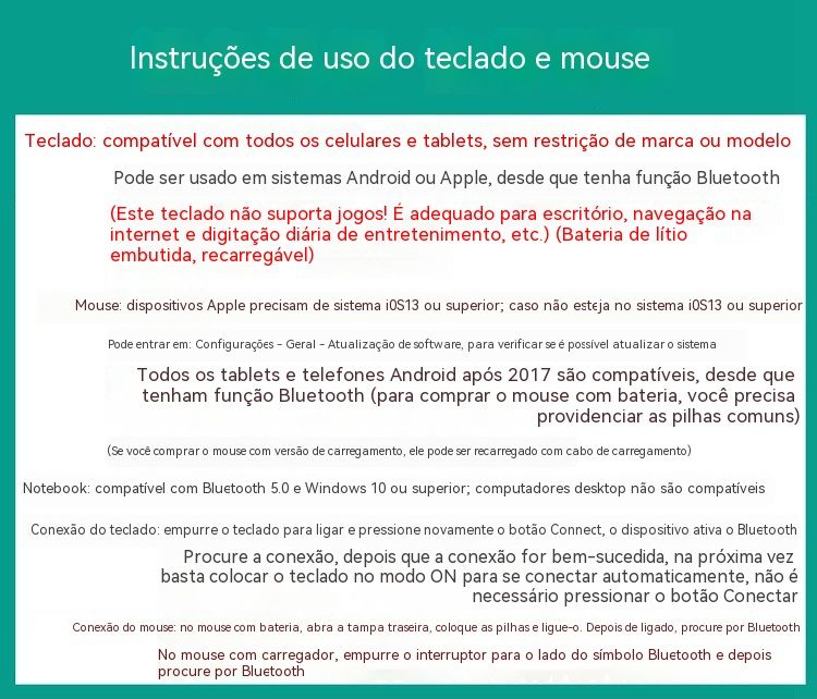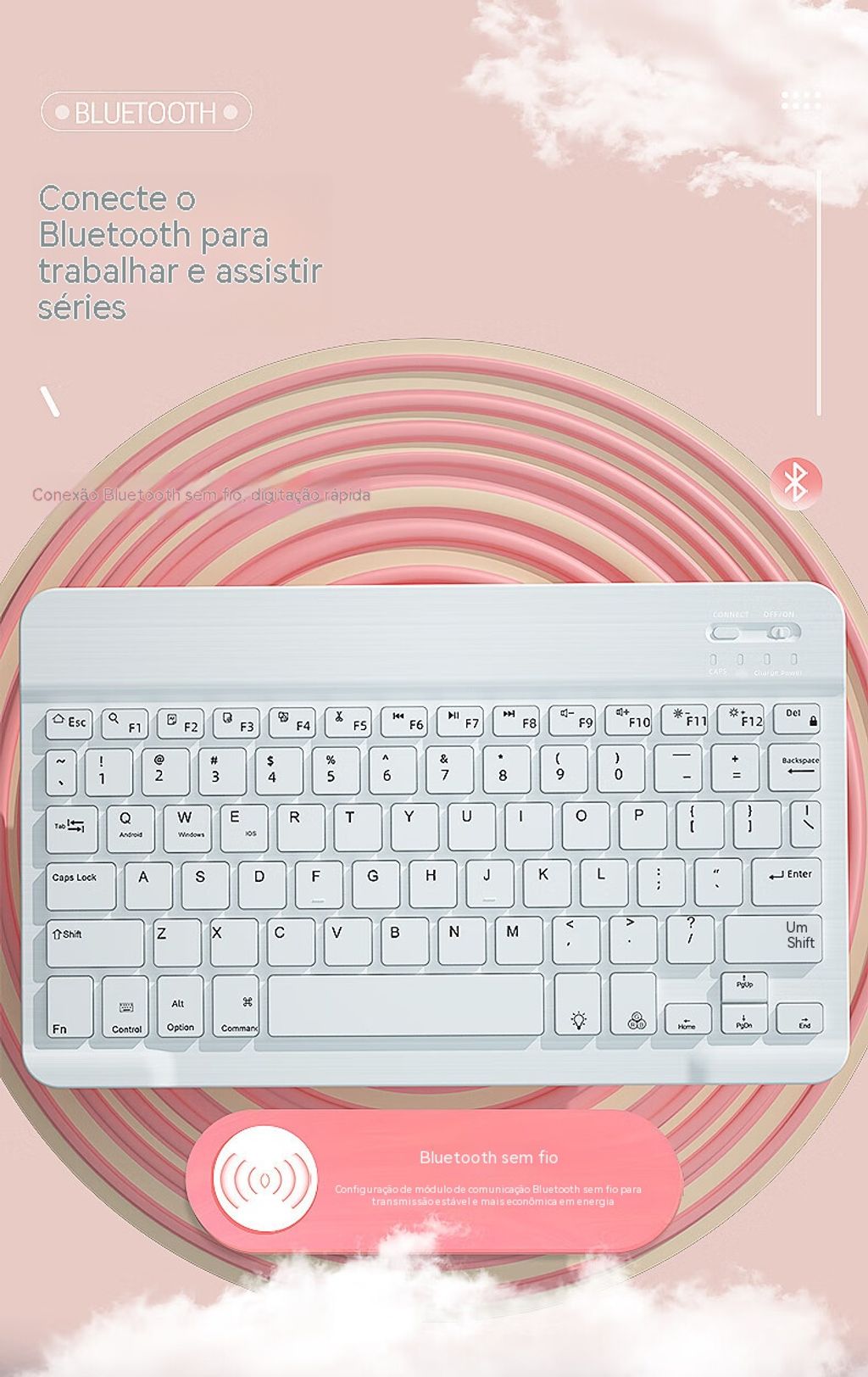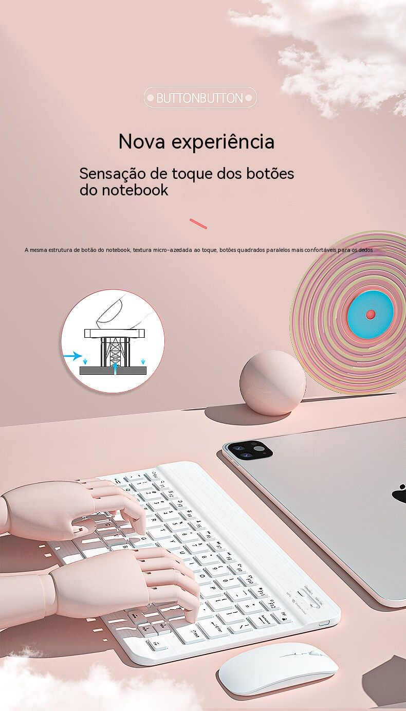 Bluetooth sem fios, ligação instantânea com um toque Trabalho eficiente e séries sem limitações Leve e fino, silencioso sem incomodar Compatível com vários dispositivos, útil em todas as situações