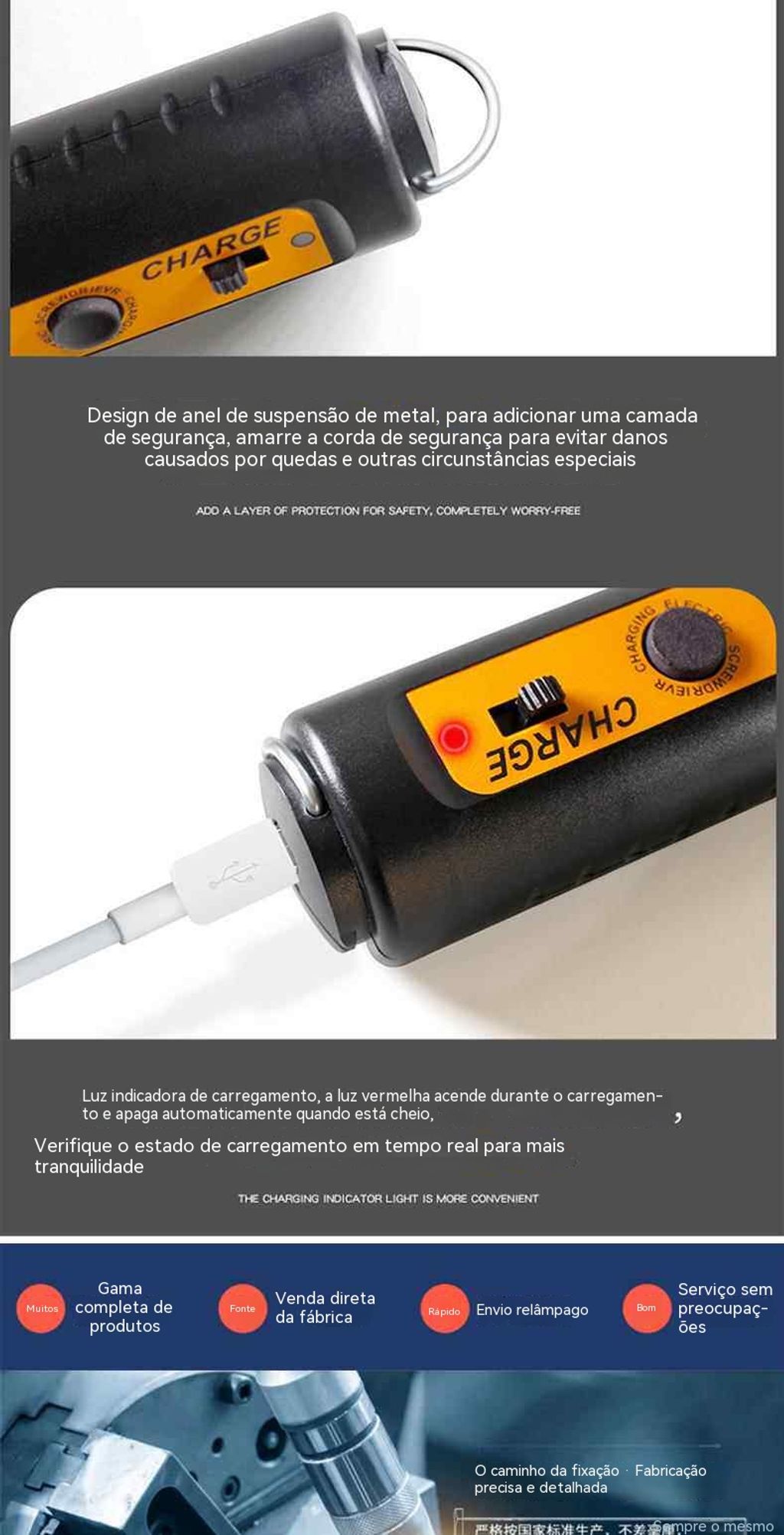 Eficiência e esforço reduzido: Potência forte, aperto em um segundo, adeus ao cansaço de apertar parAutonomia duradoura: Bateria de lítio de alta energia, uma carga satisfaz várias utilizações.afusos manualmente.