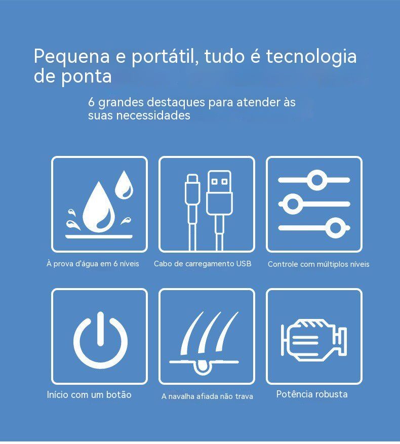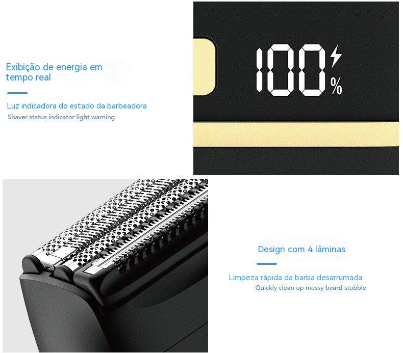 Potência forte, inimigo dos difíceis!PortátiAutonomia longa, carga rápida sem preocupações!lLavável em água, barbeia a seco e molhado! 更地道简洁版(当地市场更顺口) e pequeno, leve e sem esforço!